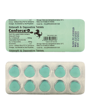 - Cenforce D se koristi za liječenje erektilne disfunkcije i prerane ejakulacije. Lijek je kombinacija sildenafil citrata, koji djeluje kao inhibitor PDE5, i dapoksetina, koji djeluje kao selektivni inhibitor ponovne pohrane serotonina.