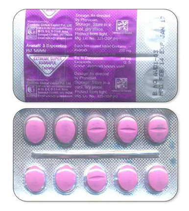 - Extra Super Avana namijenjena je liječenju erektilne disfunkcije i prerane ejakulacije. Ovaj lijek kombinira avanafil i dapoksetin, djelujući kao inhibitor fosfodiesteraze tipa 5 i drugi antidepresiv.